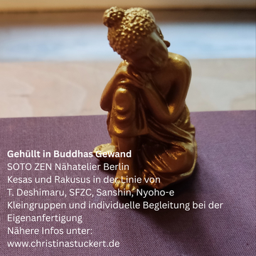 Ich habe jahrelang im Berliner Zen Dojo in der Linie von Meister Deshimaru und in der Sangha Sans Demeure Kesanähen gelehrt und auch Auftragsarbeiten gefertigt. Seitdem unterrichte ich kleine Gruppen und bin auf Anfrage behilflich beim Nähen.